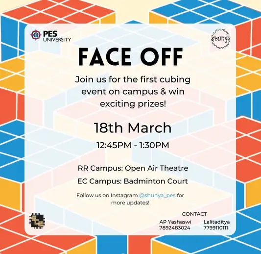 Team Shunya is super excited to inform you that we are going to be hosting our very first event in the month of April. But before that what is even better is that we are organising a very fun event for all PES RR and EC Campus students on 18th March. Make sure you attend the event to stand a chance to win exciting prizes and get to know more about the event! In case of any queries, feel free to reach out to us.